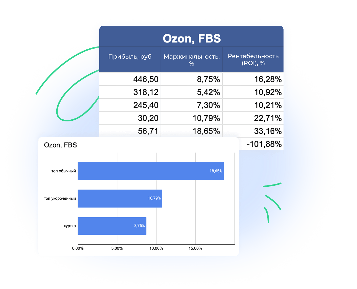 Сравнивайте прибыль и рентабельность и принимайте обоснованные решения о выгоде торговли по FBO/FBS на Ozon.