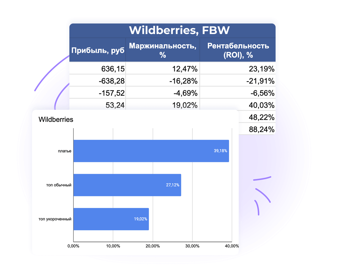 Сравнивайте прибыль и рентабельность и принимайте обоснованные решения о выгоде торговли по FBW/FBS на Wildberries.