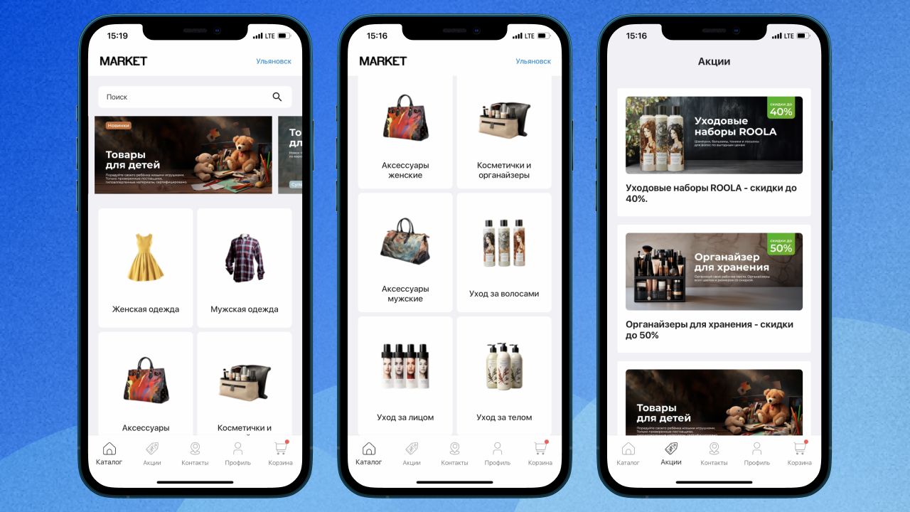 Мобильное приложение можно опубликовать на AppStore, Google Play и RuStore. При этом товарами и заказами с обеих платформ можно управлять в МойСклад.