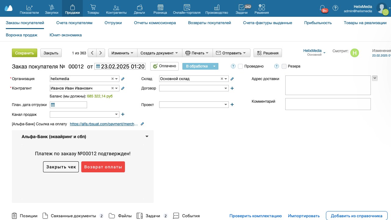 15) Автоматическая смена статуса оплаты заказа или счета;