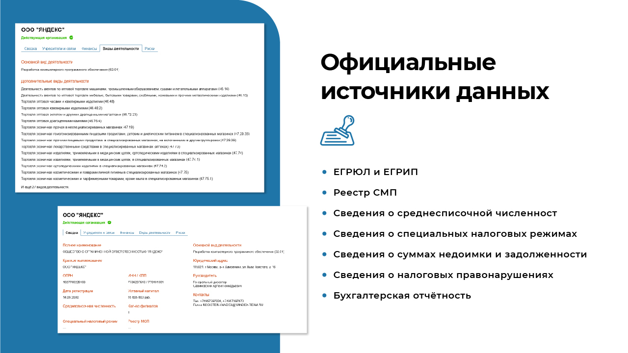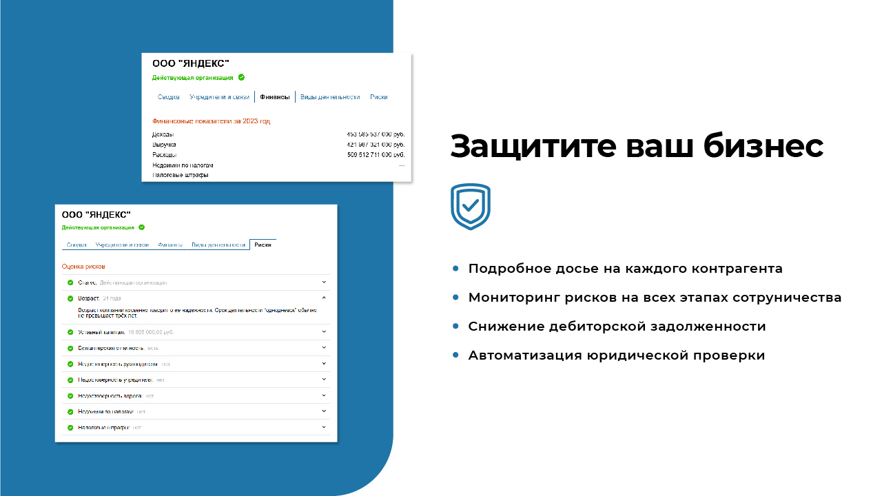 С этим решением вы можете минимизировать риски, контролировать финансовое состояние партнёров и своевременно выявлять подозрительные факты, защищая свой бизнес.