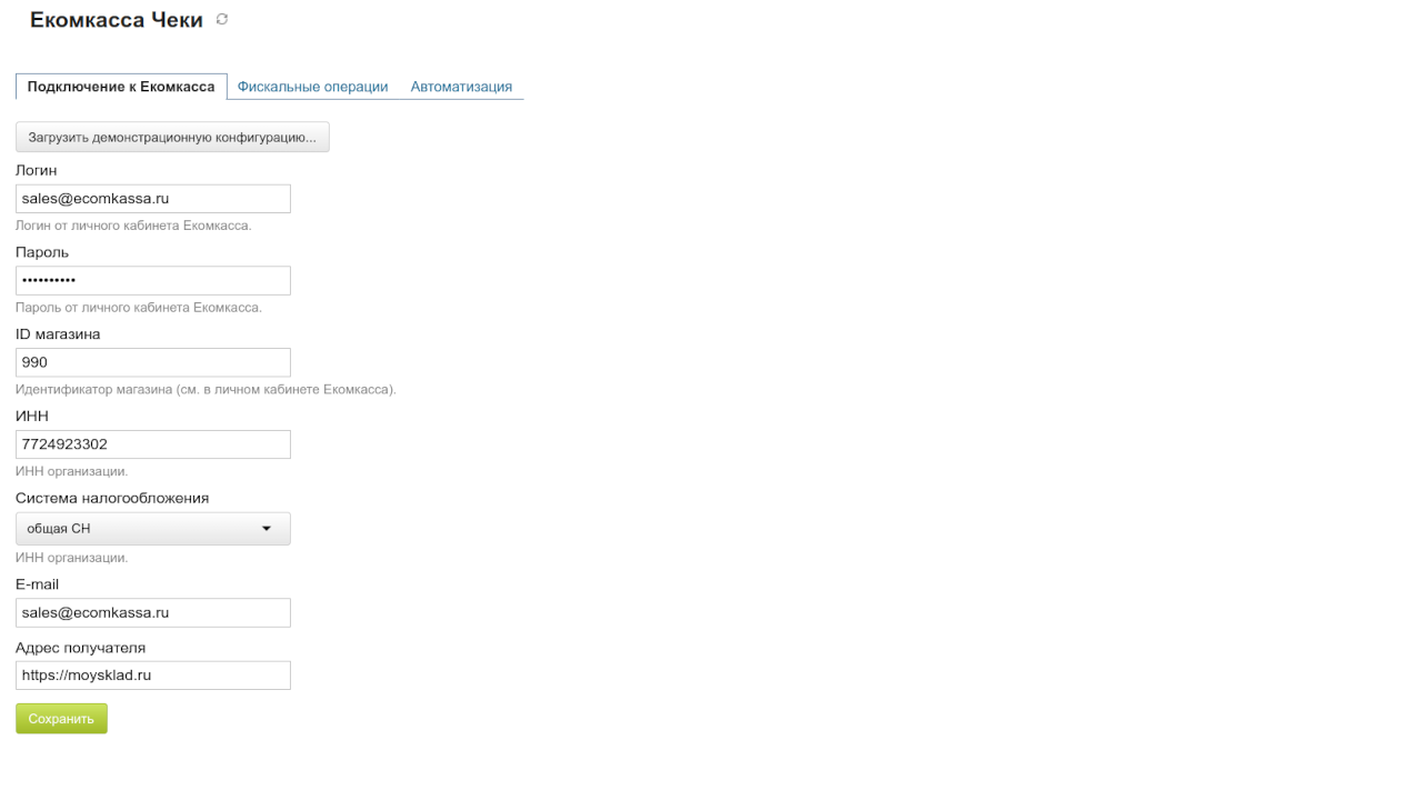 Решение помогает создавать чеки на заказы через облачную кассу Екомкасса.