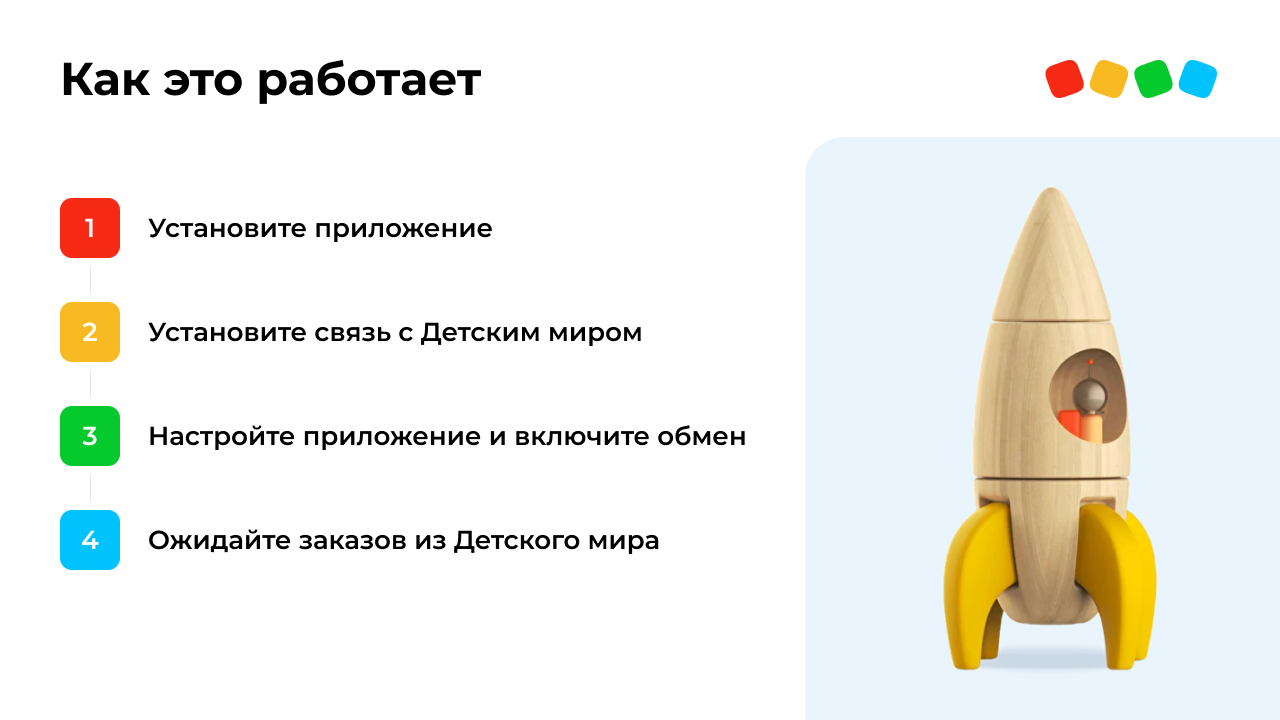 Detmir.ru — один из крупнейших и быстрорастущих онлайн-магазинов в России, и теперь можно легко выйти на эту многомиллионную аудиторию по схеме FBS. Наш интеграционный модуль поможет сделать это быстро и просто, особенно если вы уже используете сервис МойСклад. Настройка модуля займёт не более 15 минут.