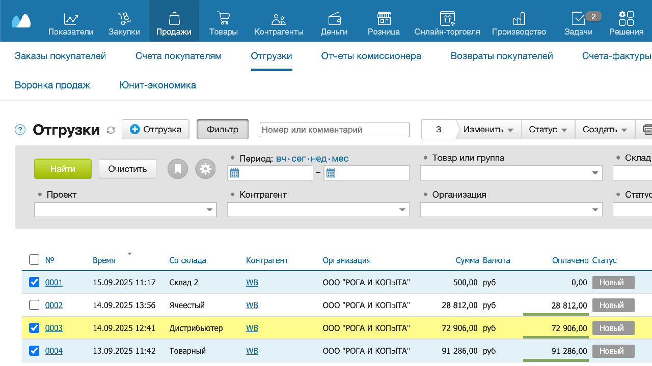 Решение позволяет работать с большими объемами данных — за один раз можно обработать до 1000 отгрузок. Если выбранных позиций больше 20, системе потребуется некоторое время для обработки, поэтому стоит запастись терпением.