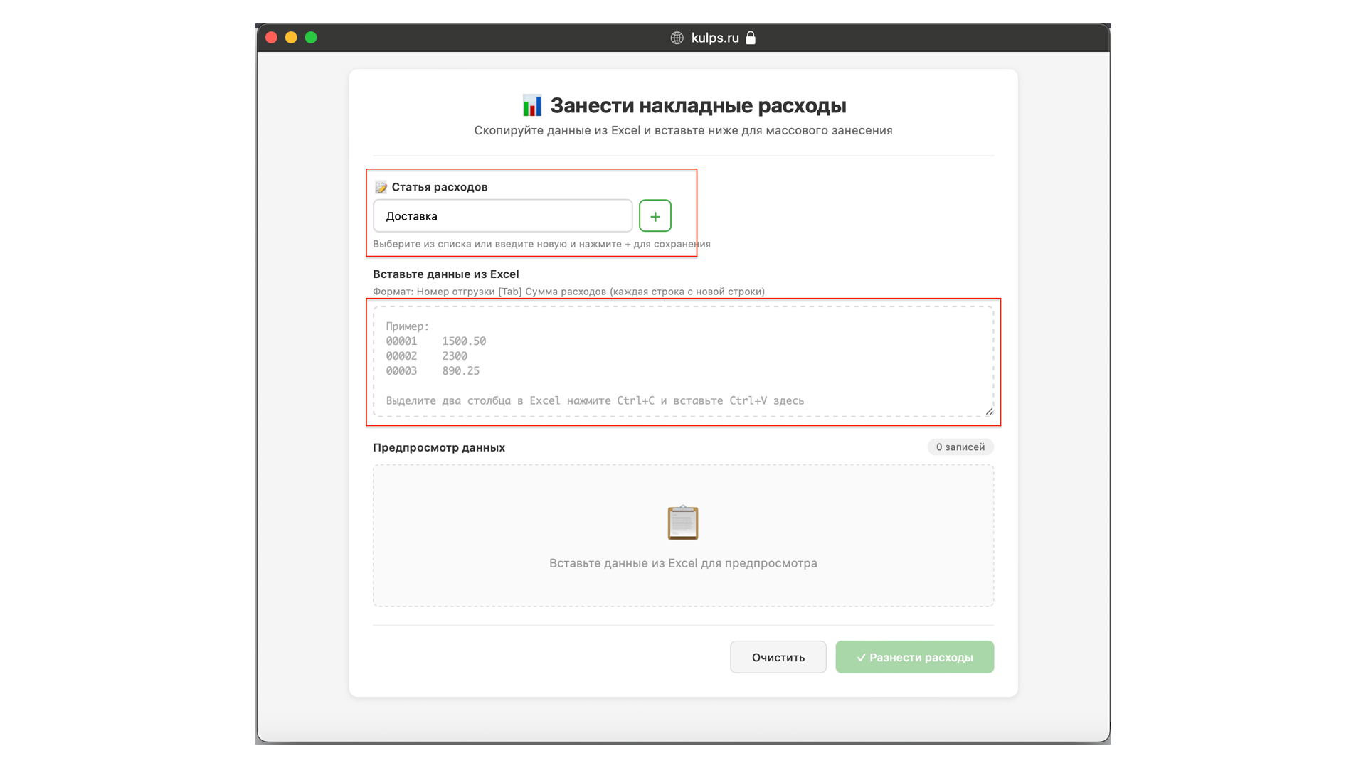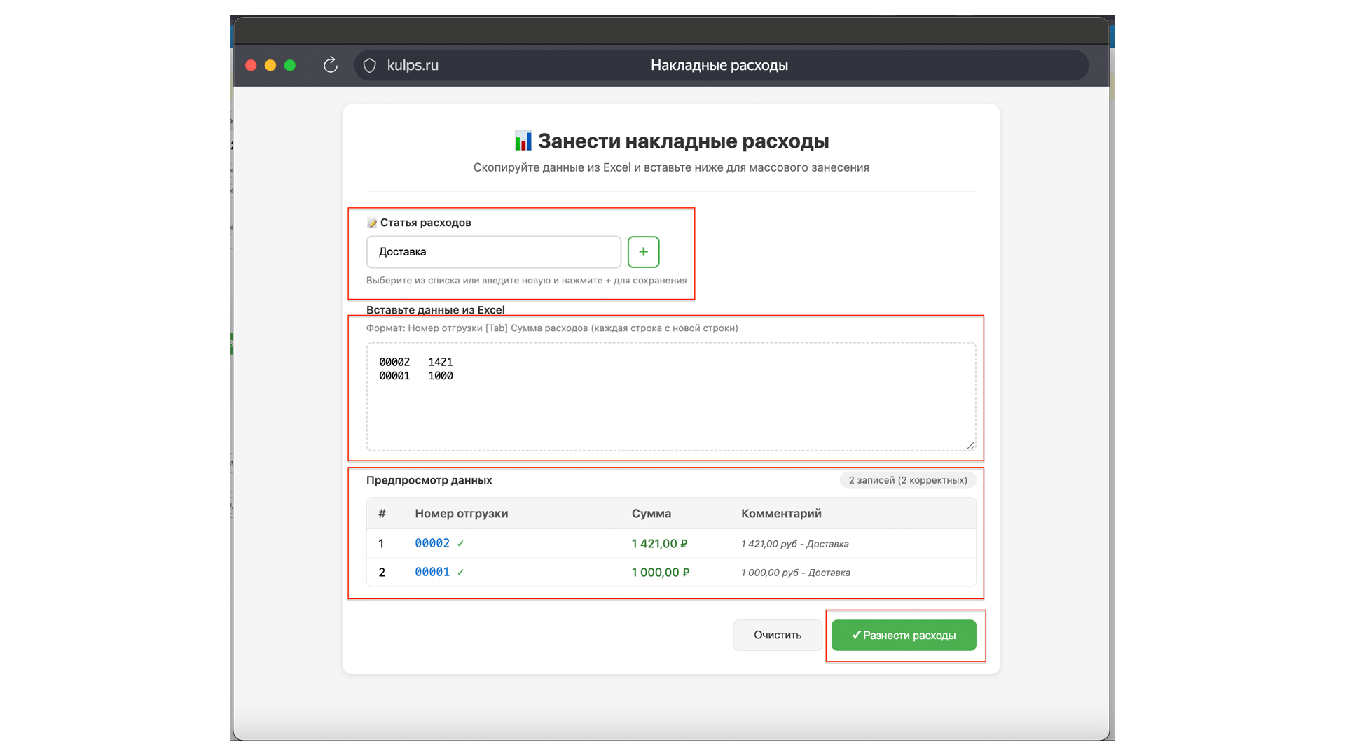 - Нажмите кнопку «Разнести расходы».