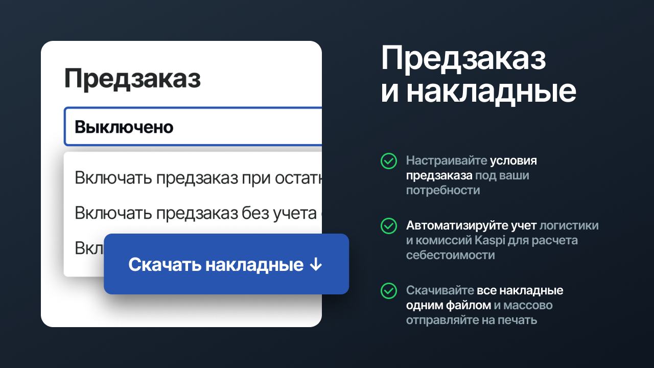 - Гибкий предзаказ: Настраивайте условия предзаказа под потребности вашего бизнеса.