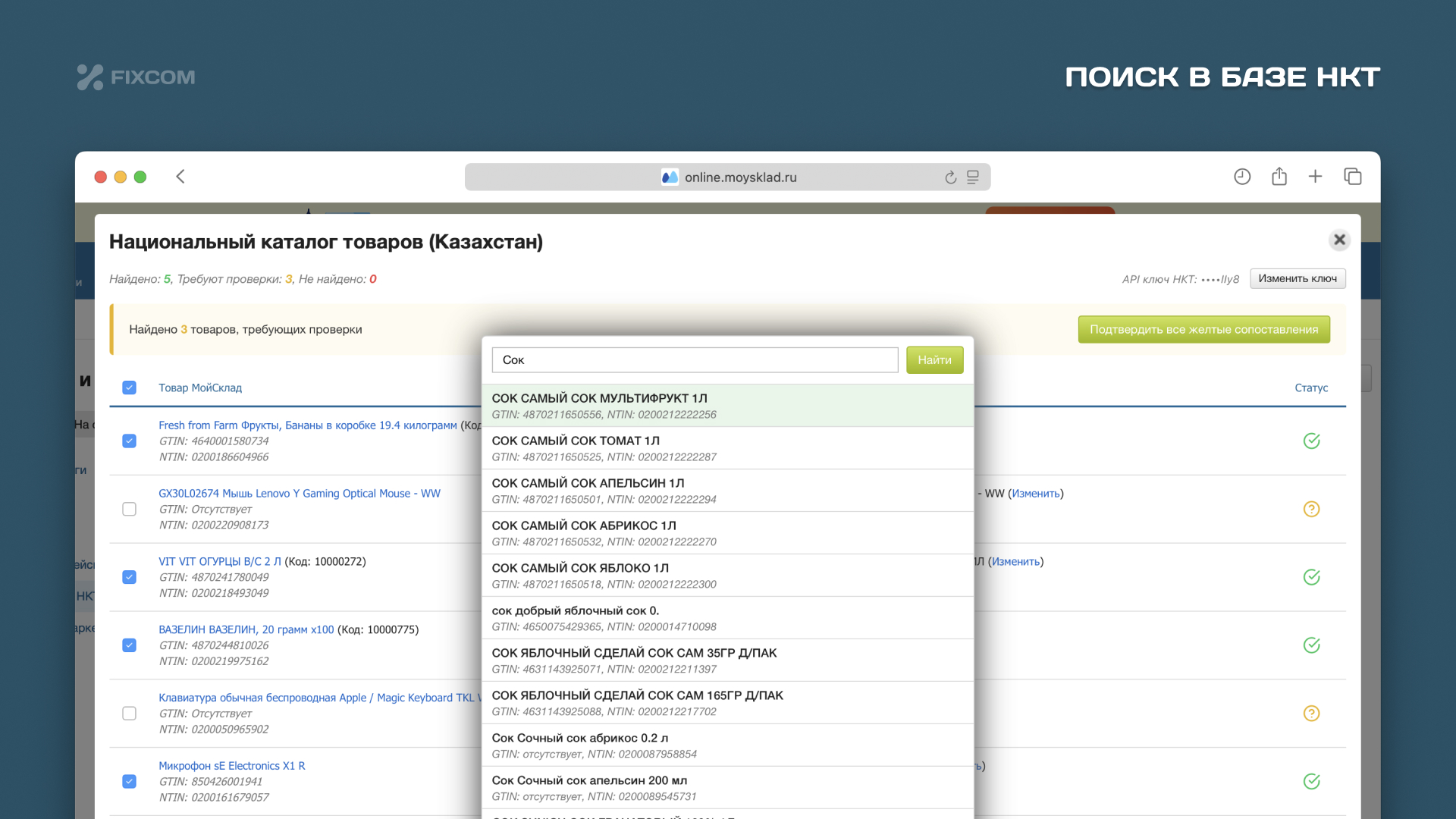 - Умный поиск: Автоматически находит товары в НКТ по штрихкоду (GTIN) или наименованию.