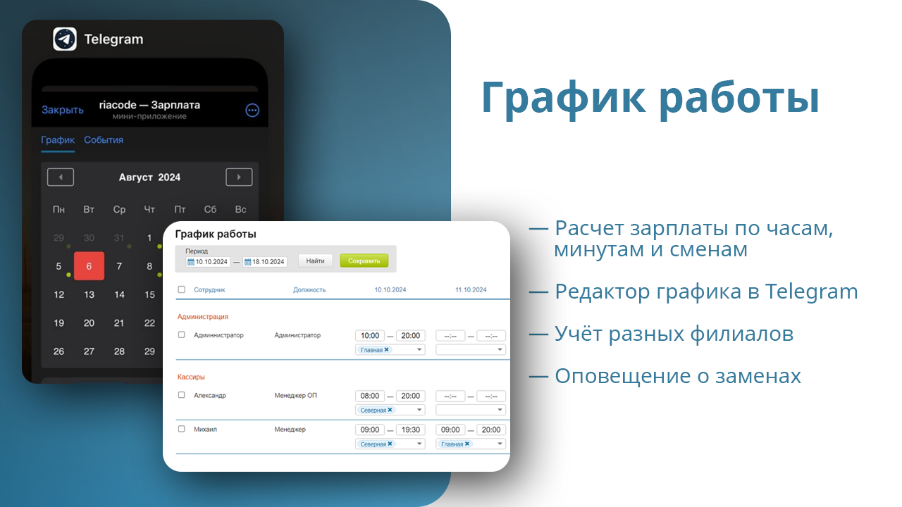 Приложение за вас посчитает зарплату по каждому сотруднику, создаст платежный документ и оповестит в телеграм.