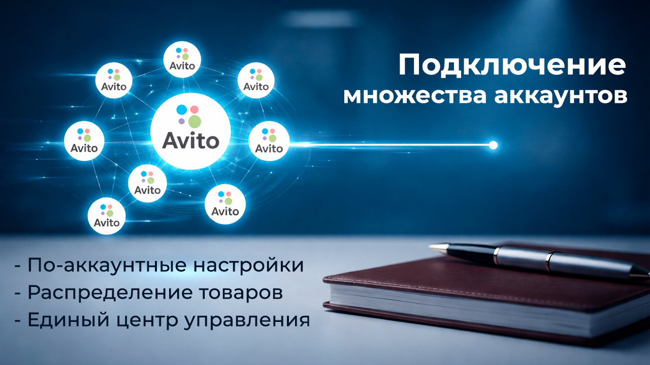 — Централизованное управление всеми товарами на разных аккаунтов (выбрайте какие товары в какие аккаунты Авито передавать)