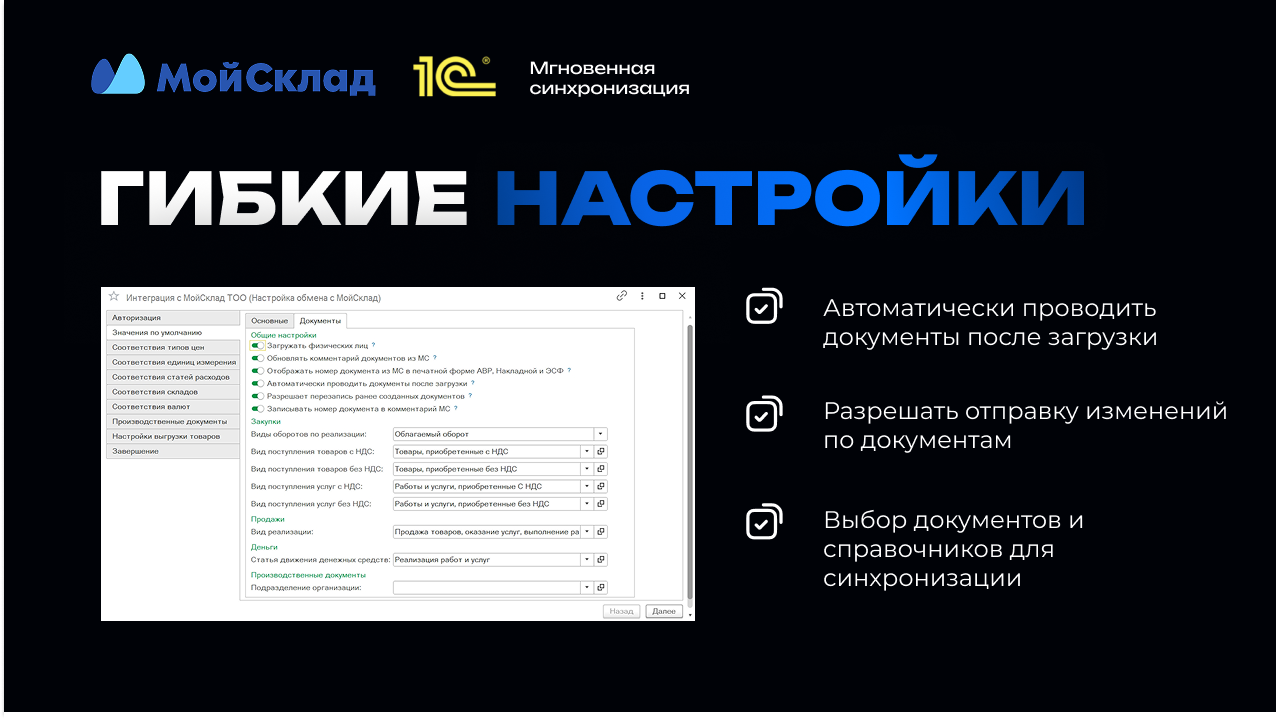 Гибкая настройка обмена (документы, справочники) ️