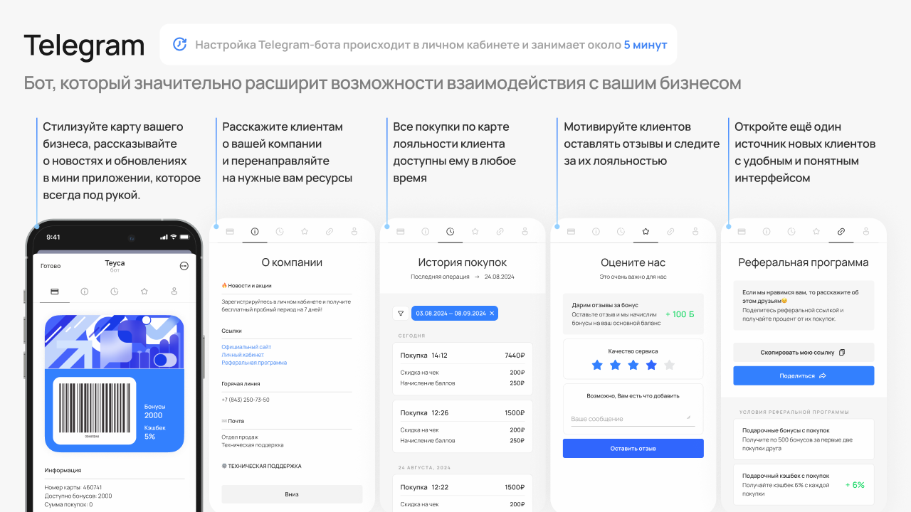 Telegram MiniApp – карта лояльности и бесплатные рассылки;