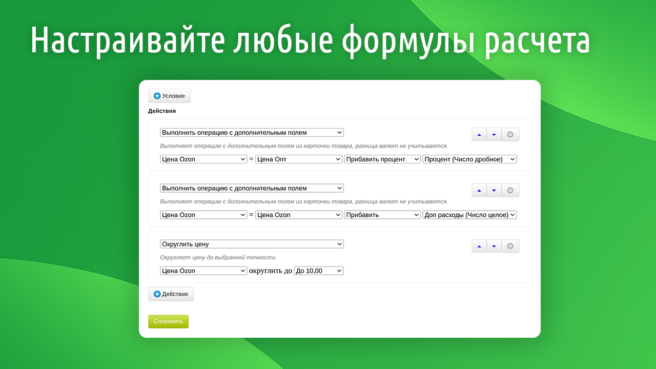Добавляя фиксированное значение или умножая на коэффициент. - Округлять цены по определенным правилам.