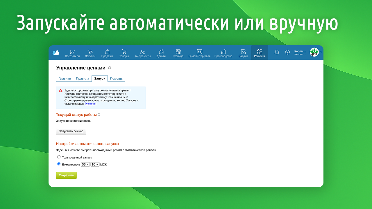 Возможность настройки регулярного выполнения правил по расписанию либо только по нажатию на кнопку.