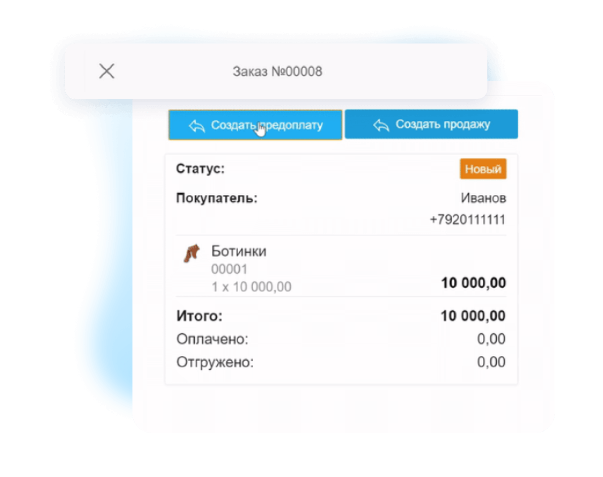 Можно принимать предоплату от покупателя и учитывать ее при совершении покупки.