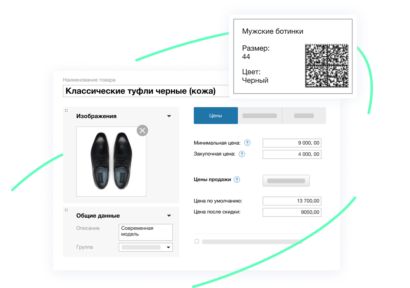 - Инструменты для работы с документами. Используйте готовые шаблоны договоров, накладных, актов, маршрутных листов или создавайте собственные. Редактируйте ценники и этикетки: добавляйте логотип, производителя, скидку и другую информацию. Генерируйте штрихкоды.