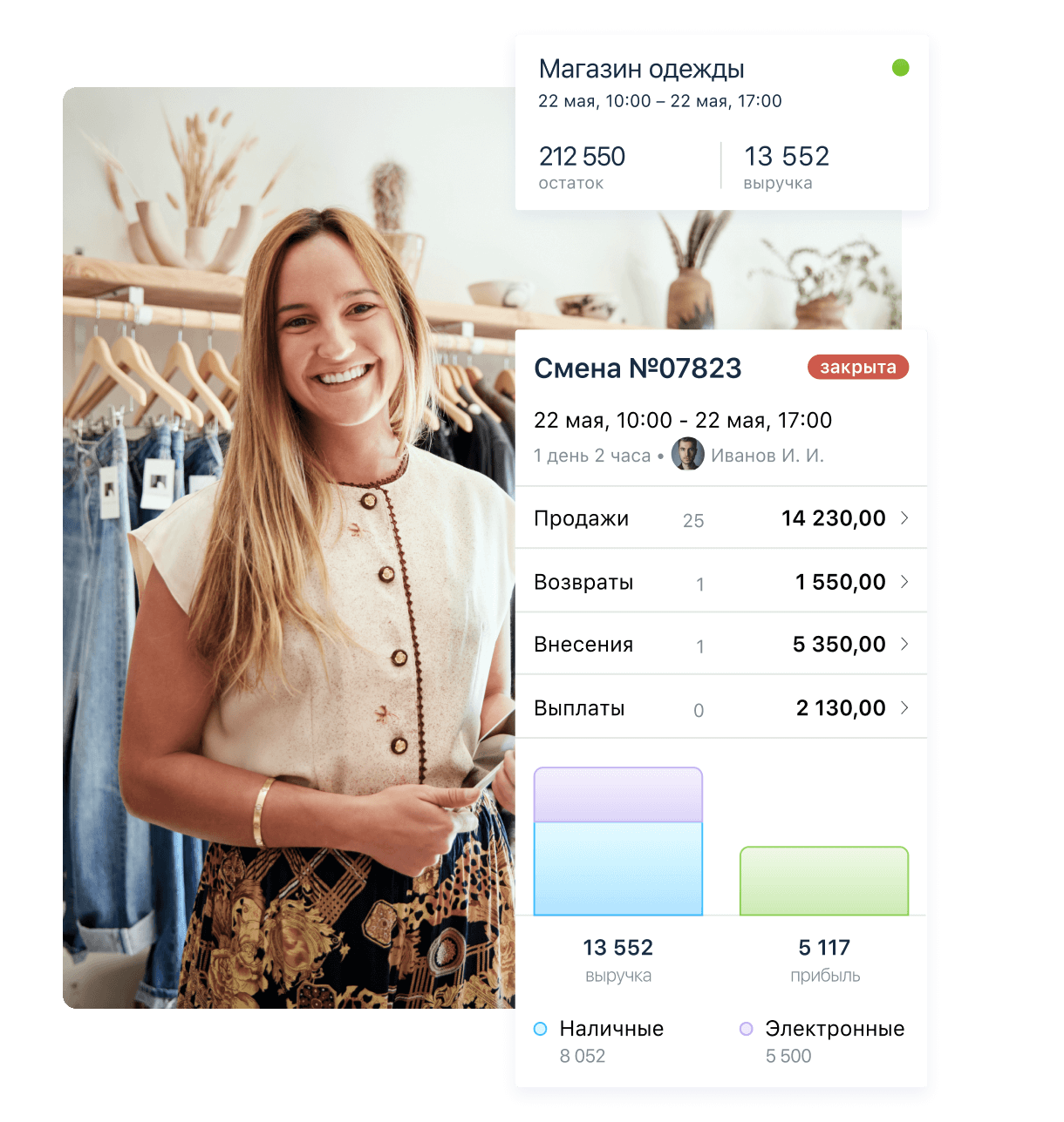 - Автоматизированное рабочее место продавца (АРМ). Оформляйте продажи и возвраты любых товаров.